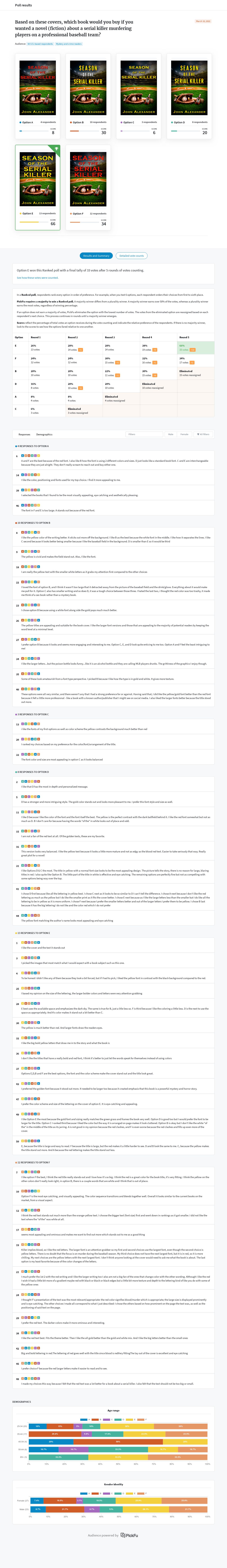 Unearth more insights with a detailed poll report, discovering what respondents liked, disliked, and what to do next.Aesthetic Appeal: Across both options, aesthetics were crucial in influencing preferences. Participants often referred to colors and overall design quality when justifying their choices.