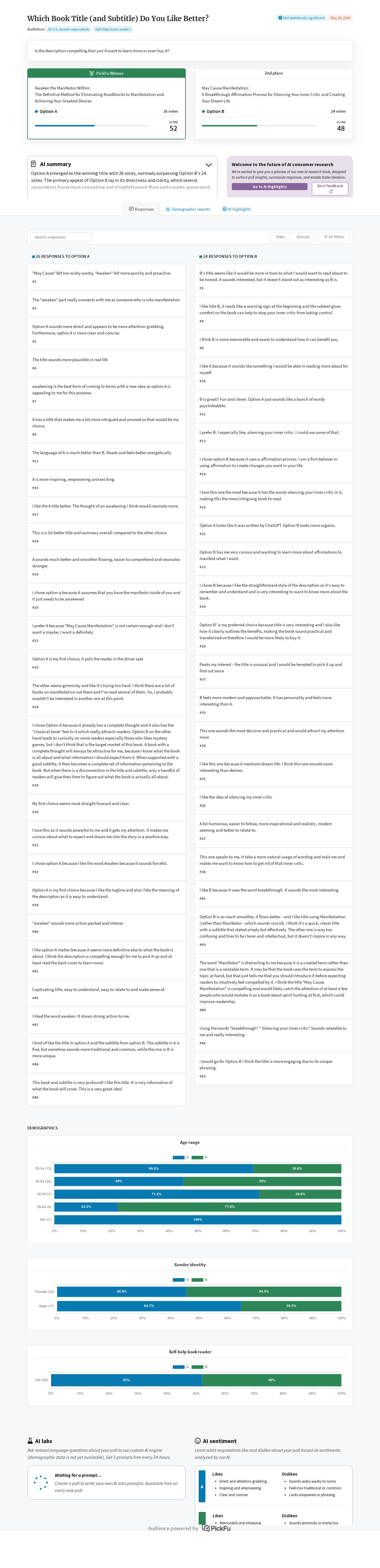 Subscribe to PickFu+ to unlock AI highlights on every poll.