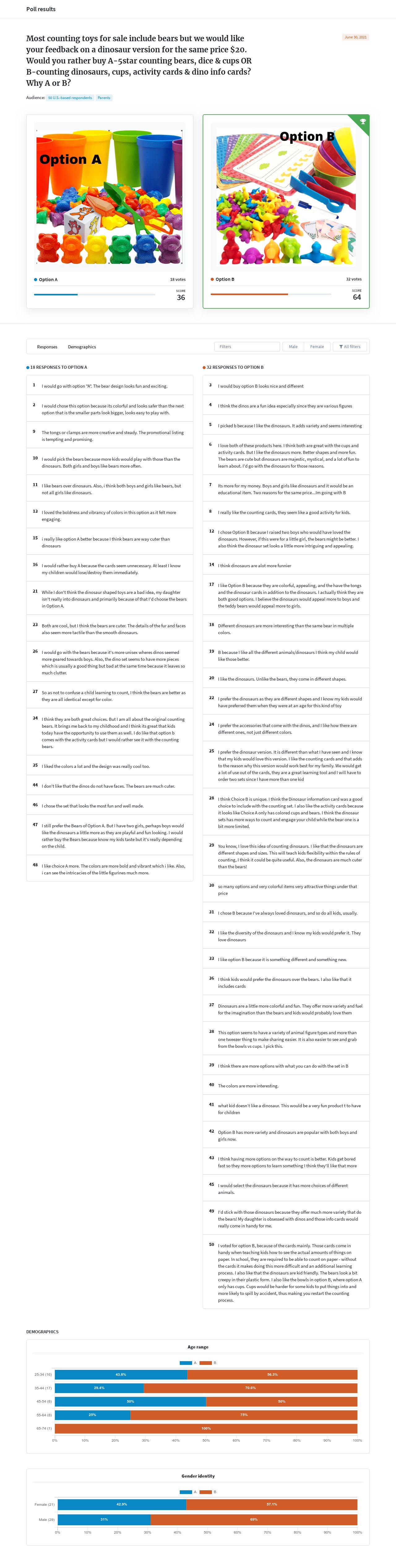 Subscribe to PickFu+ to unlock AI highlights on every poll.