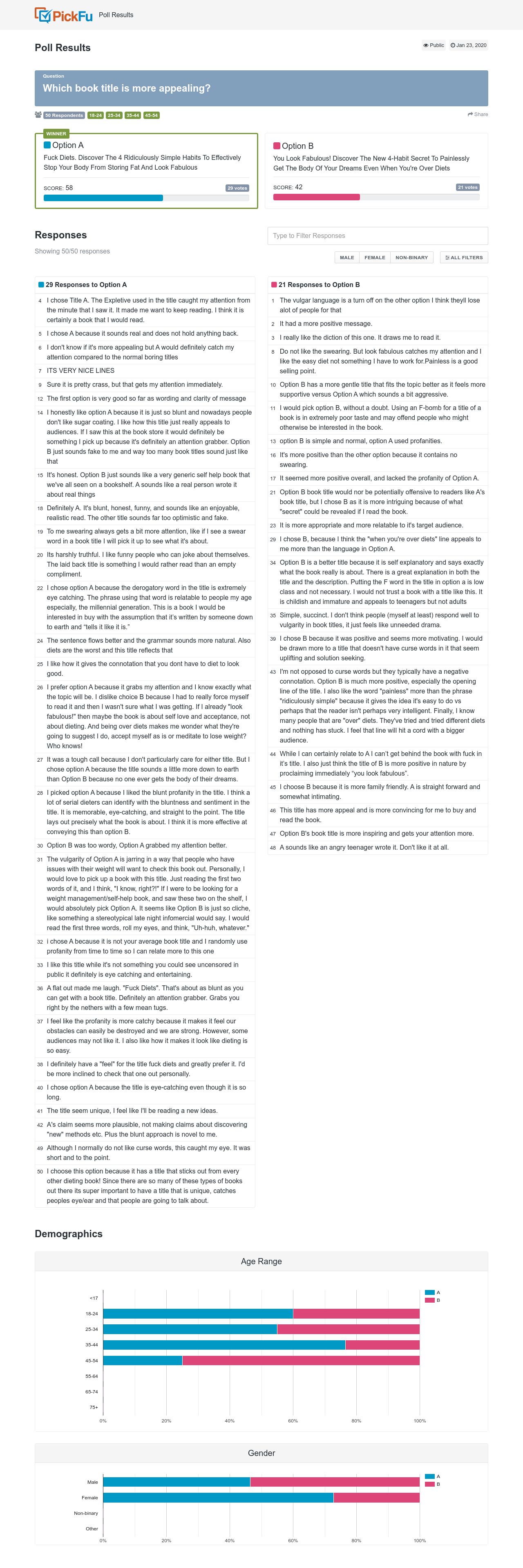 Unearth more insights with a detailed poll report, discovering what respondents liked, disliked, and what to do next.Aesthetic Appeal: Across both options, aesthetics were crucial in influencing preferences. Participants often referred to colors and overall design quality when justifying their choices.
