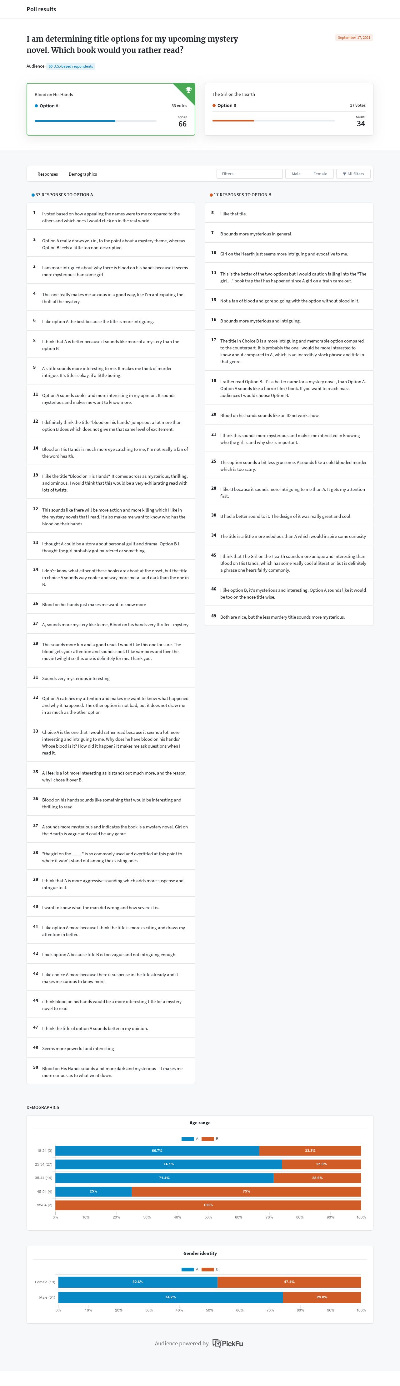 Subscribe to PickFu+ to unlock AI highlights on every poll.